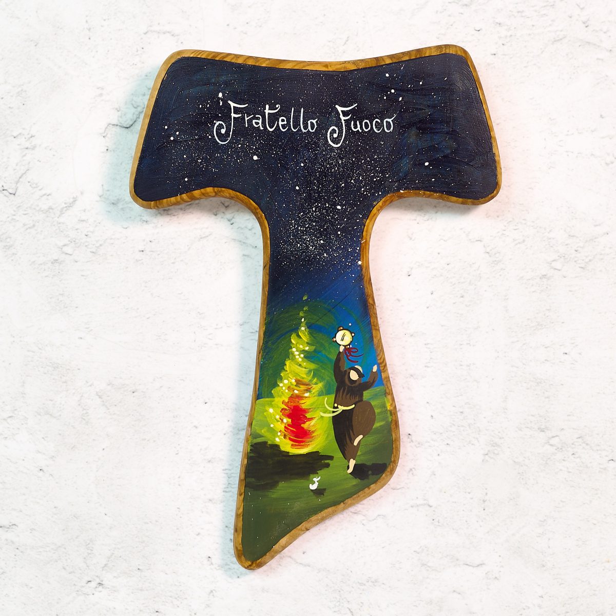 Von Hand gemaltes Bild mit Acrylfarbe auf Olivenholz.