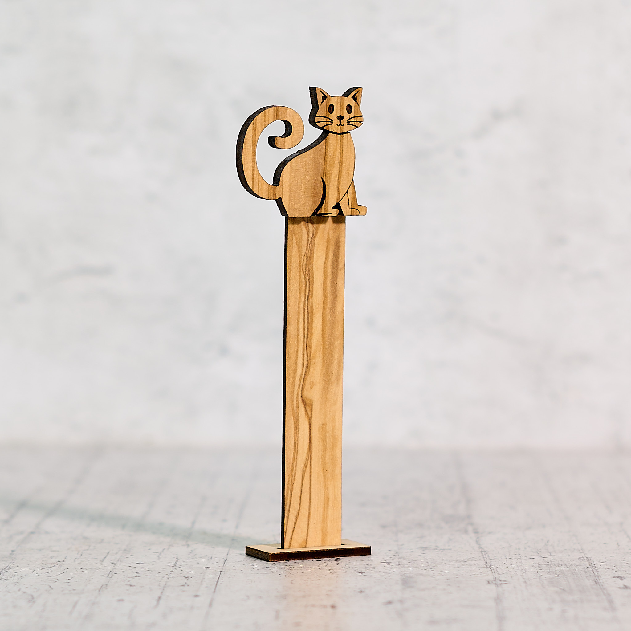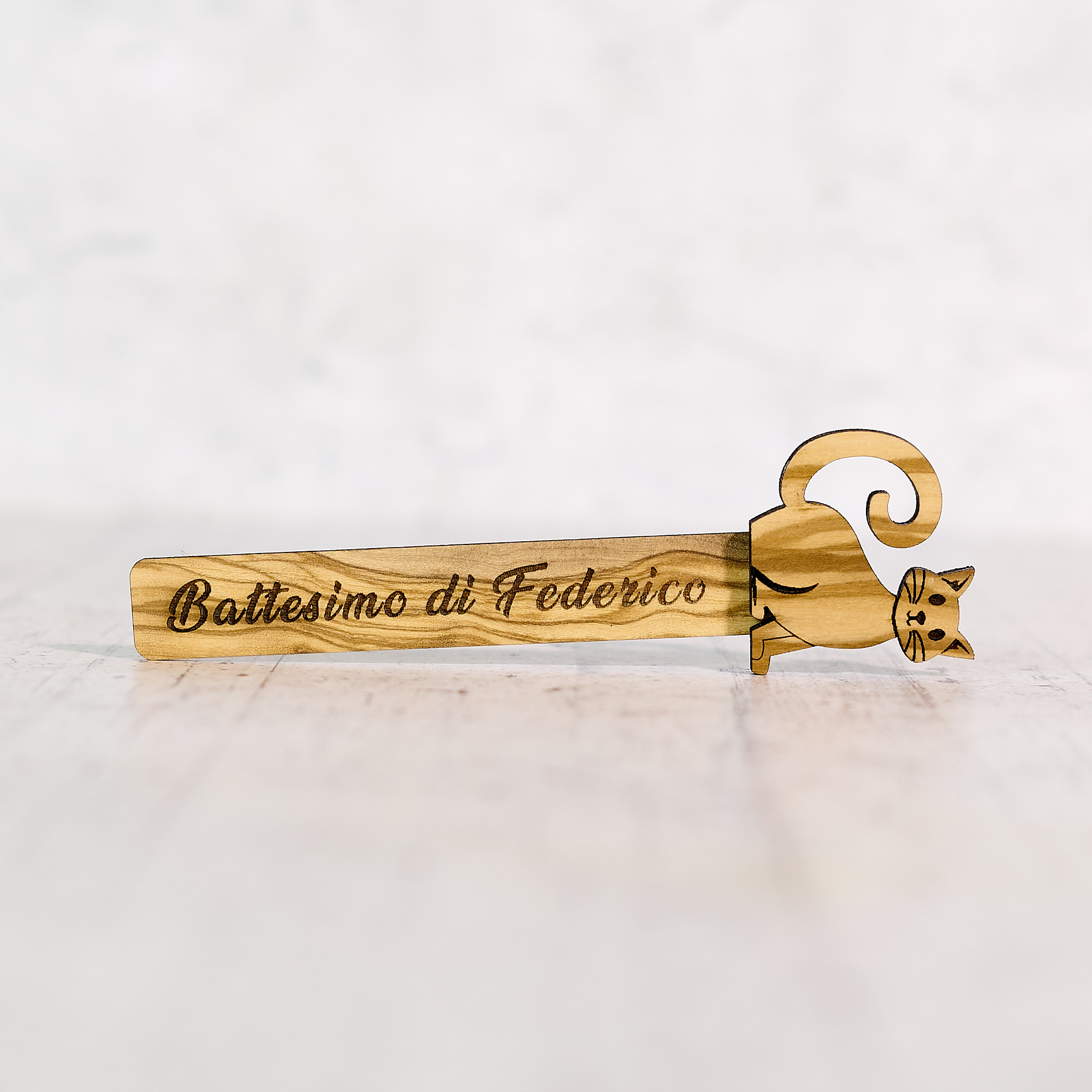 Un piccolo dettaglio che resta nel tempo: questo segnalibro artigianale in legno di olivo è impreziosito da un simpatico gatto dal design delicato e moderno. Perfetto per accompagnare un libro, ma anche come ricordo utile ed elegante da regalare ad amanti dei libri, maestre, catechisti o ospiti speciali.