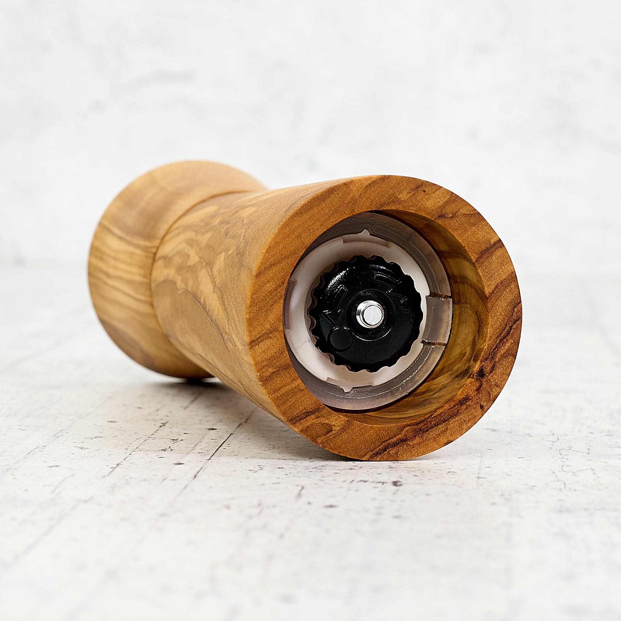 Il legno di ulivo è particolarmente apprezzato per la sua straordinaria compattezza, resistenza e durata nel tempo. Le sue venature calde e irregolari, che vanno dal miele dorato fino a tonalità più intense, rendono ogni macinino un pezzo unico, diverso da tutti gli altri. Questo significa che non esistono due oggetti identici: ogni esemplare racconta la storia naturale dell’albero da cui proviene.