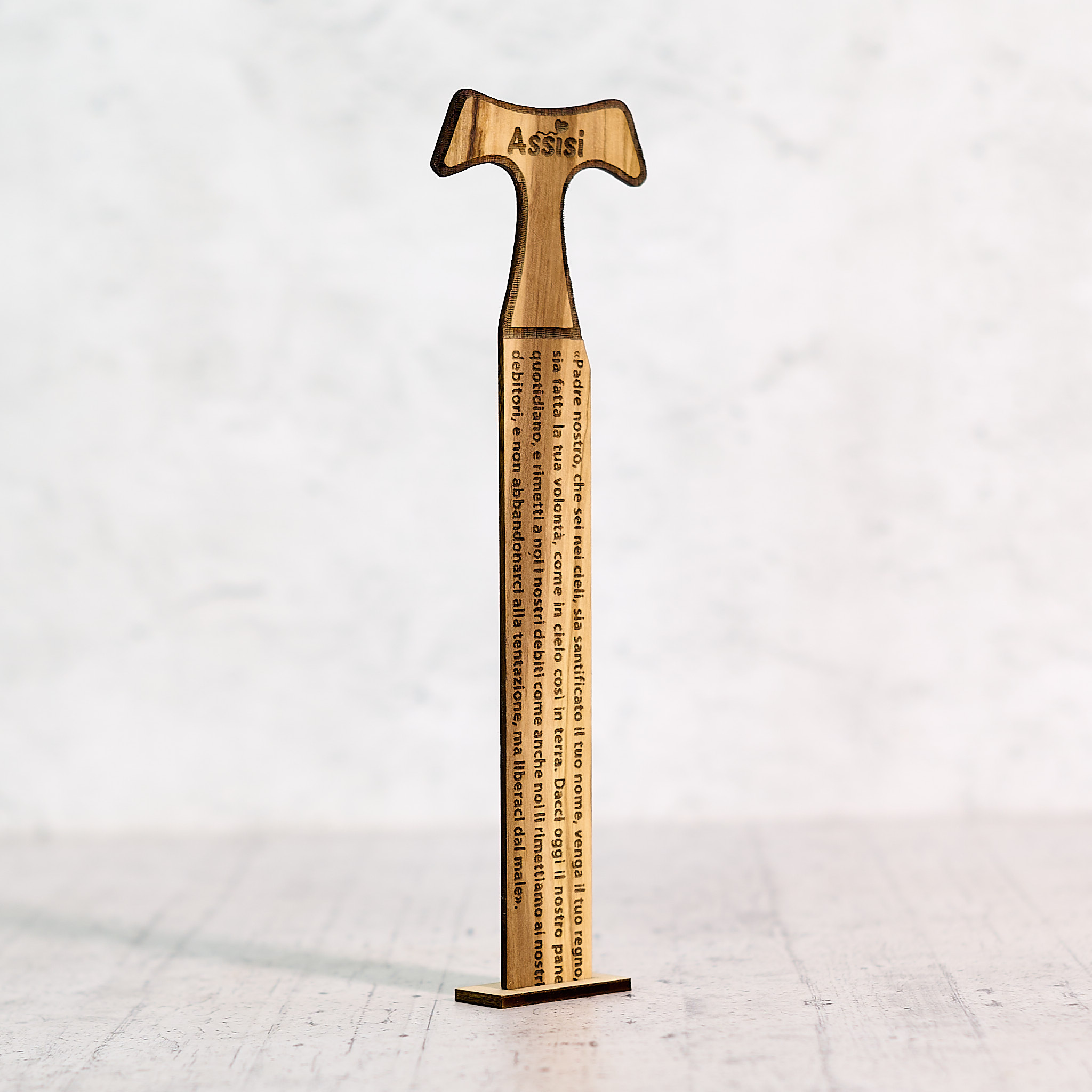Segnalibro Tau “Padre nostro” in legno di olivo