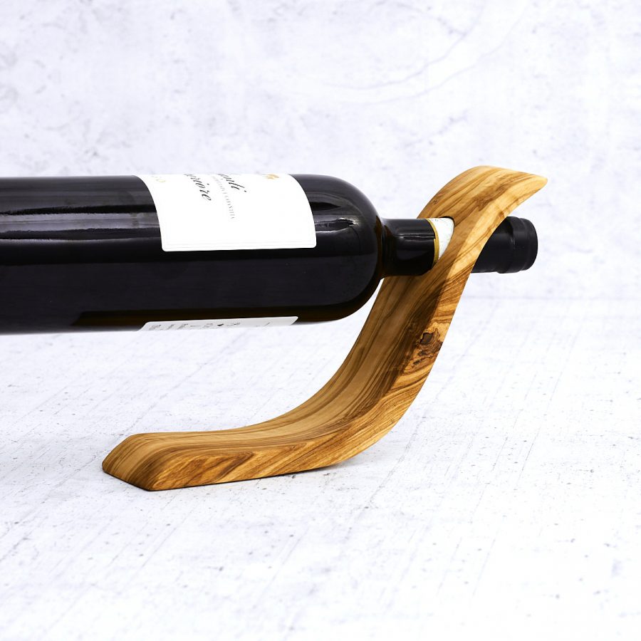 Un piccolo rifugio per il vino, dove la bottiglia riposa al sicuro, tra le venature calde del legno d’ulivo. Funzionale ed elegante, è un abbraccio artigianale per i momenti da gustare con lentezza.