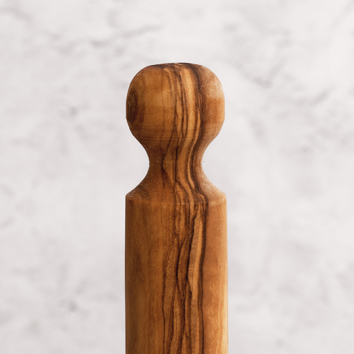 The olive wood paper towel holder is a practical kitchen accessory designed to securely hold and easily unroll a roll of paper towels. Made from genuine olive wood, it combines functionality with natural beauty, enhanced by its warm, irregular grain patterns that make each piece unique.